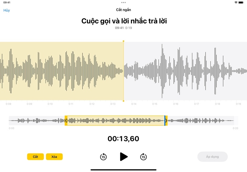 Cắt ngắn bản ghi. Chạm vào Sửa, sau đó chạm vào Công Cụ Cắt Ngắn