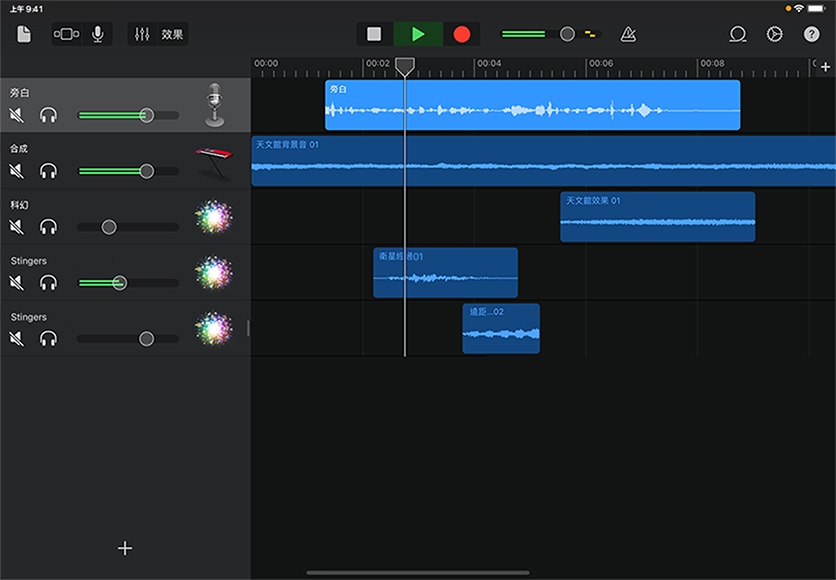 收集社區或學校附近的自然聲音。在 iMovie 計畫案中,將聲音與影像相結合,以製作視覺化的聲音風景。