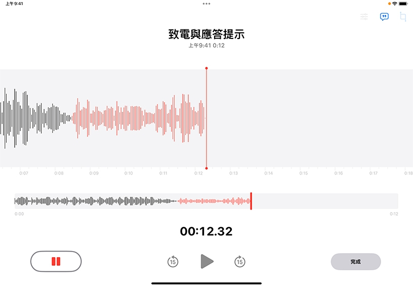 。點一下「完成」結束錄音。點一下「播放」