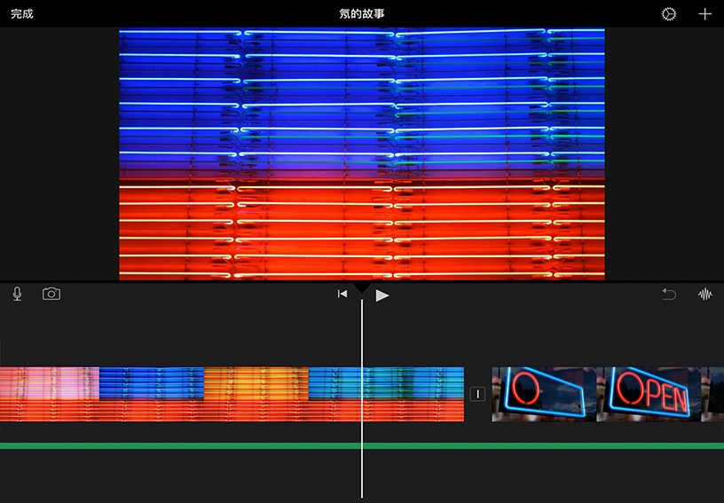 加入背景剪輯片段。選取照片或影片剪輯片段,並加入到時間列中。這個鏡頭便會成為場景背景。