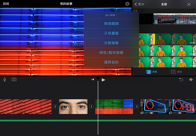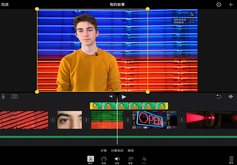 裁剪綠幕剪輯片段內容。點一下「遮罩」