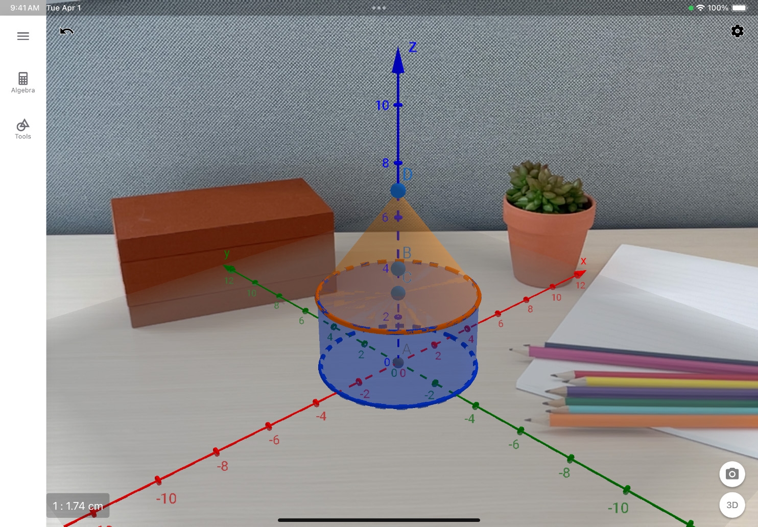 助力学生将抽象概念应用于现实环境,开展实验探索。借助 GeoGebra 3D 计算器,学生可求解数学方程,将 3D 对象放置在实体平面,还能从任意角度对其进行观察。
