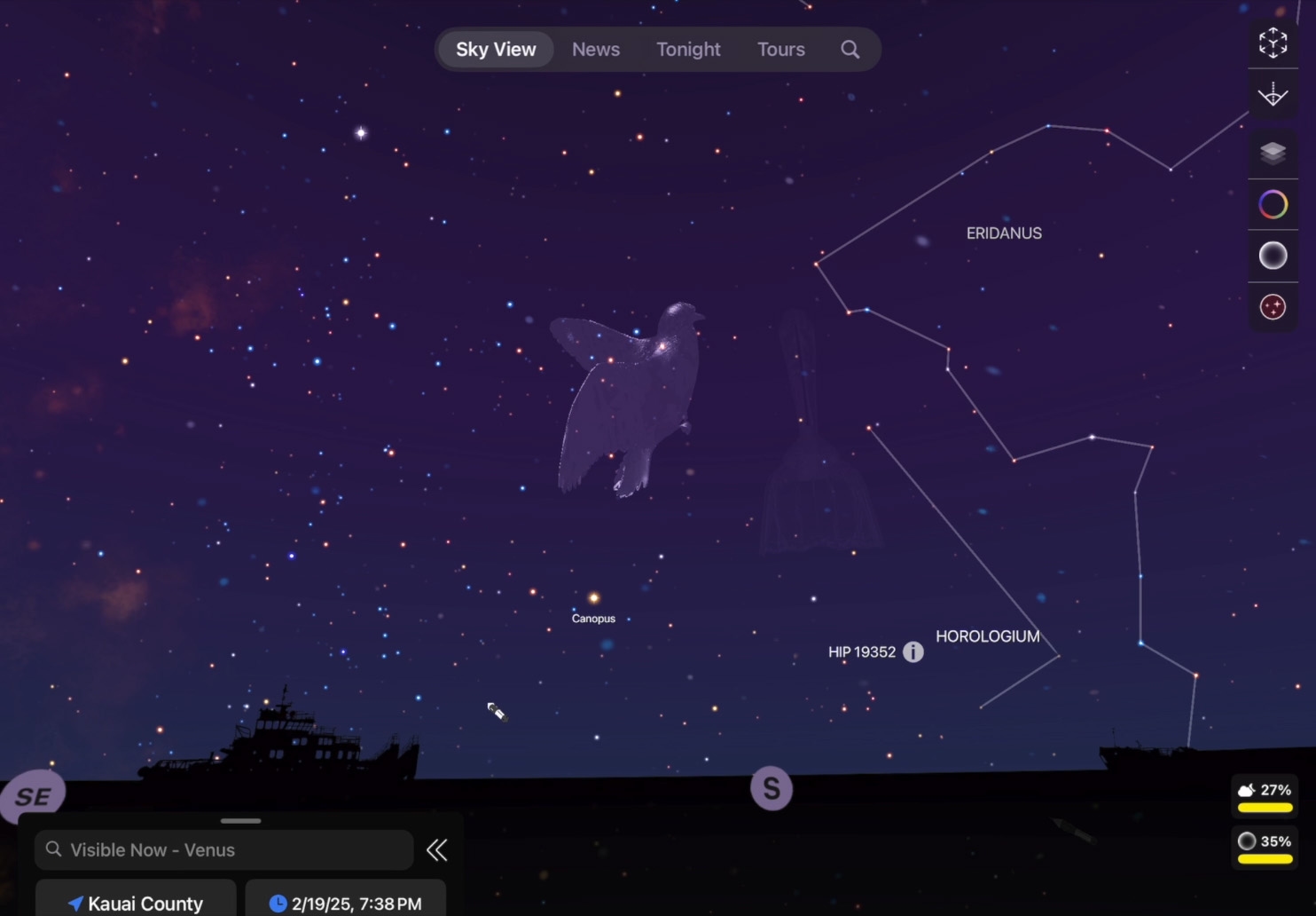 開始 AR 體驗。點一下畫面右上角的「AR 體驗」,用兩指上下滑動以調整「擴增實境星象結合」。