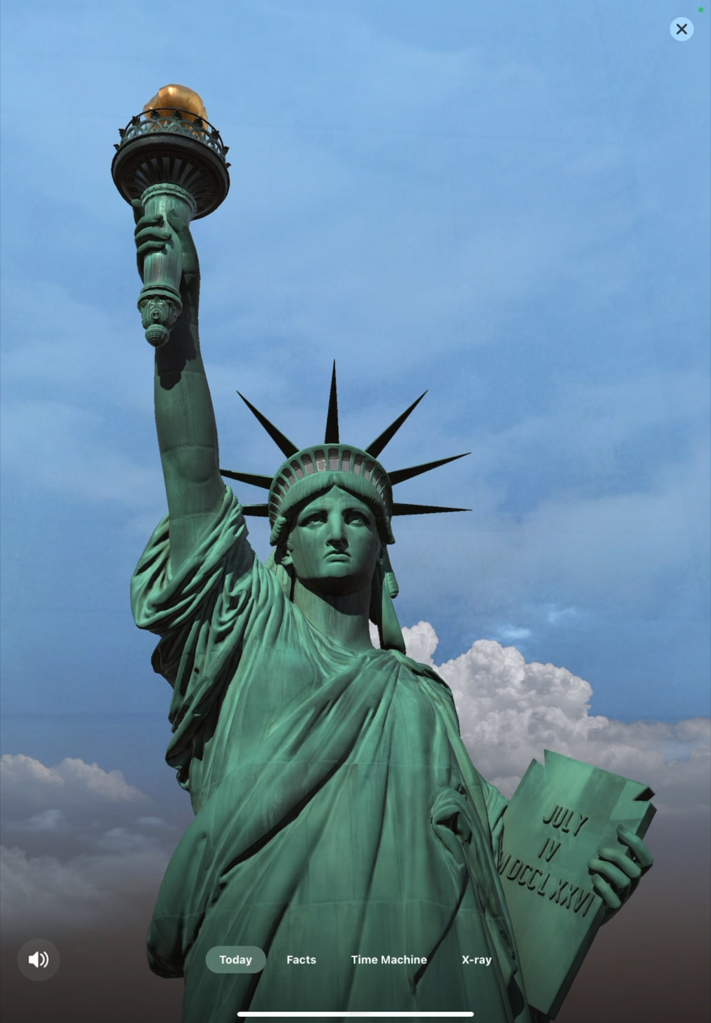 選擇體驗。向上滑動以顯示 app 的各區段。點一下「How Liberty Was Made」(自由女神像製作方式),然後向上滑動以查看自由女神像製作過程的教育內容。