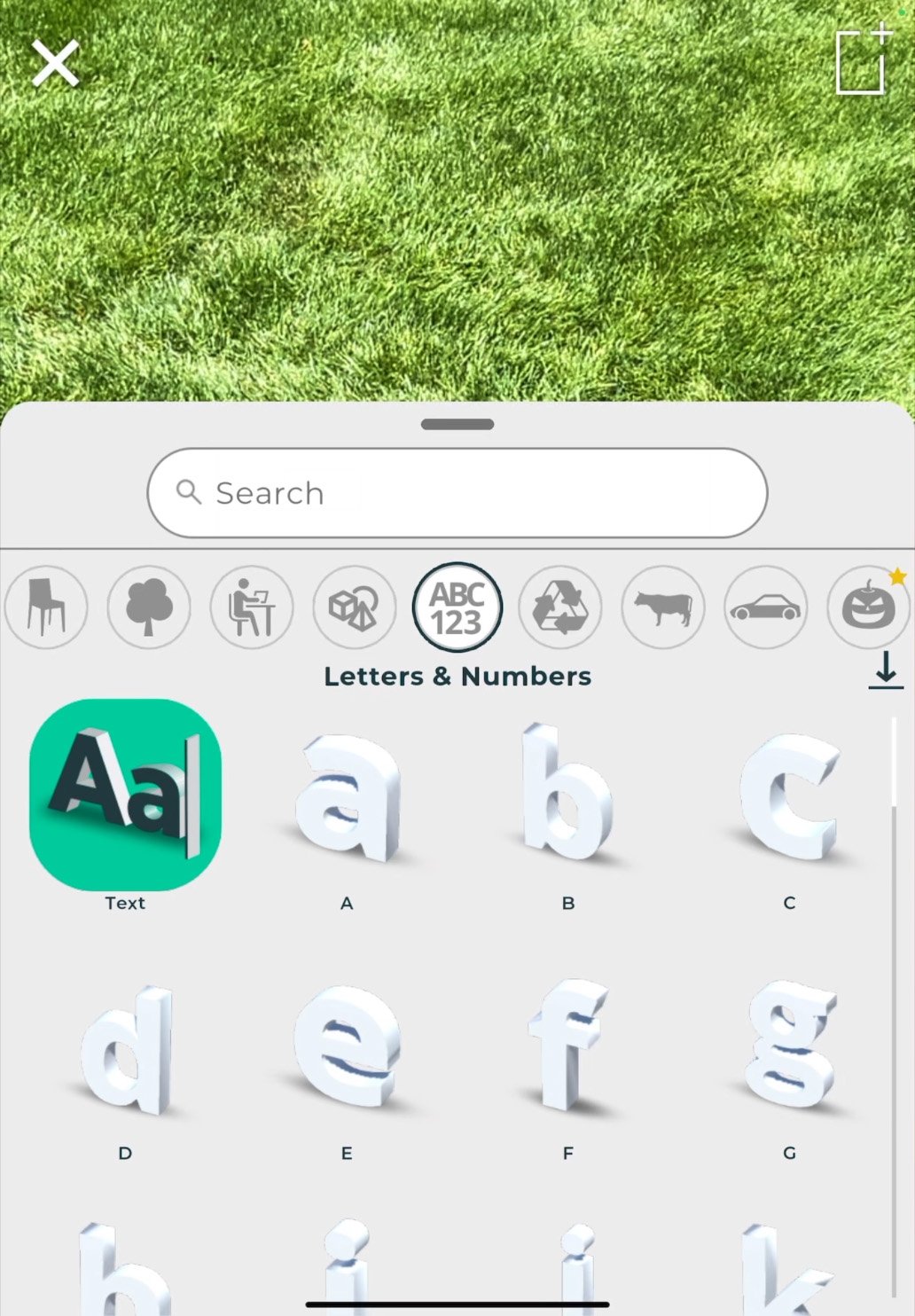 Välj en modell.0xASvep åt vänster eller höger för att titta igenom de olika modellsamlingarna, till exempel Grundläggande figurer, Djur och Lärmiljöer. Rulla för att visa alla objekt i de olika samlingarna. Tryck på en modell och sedan på Select .