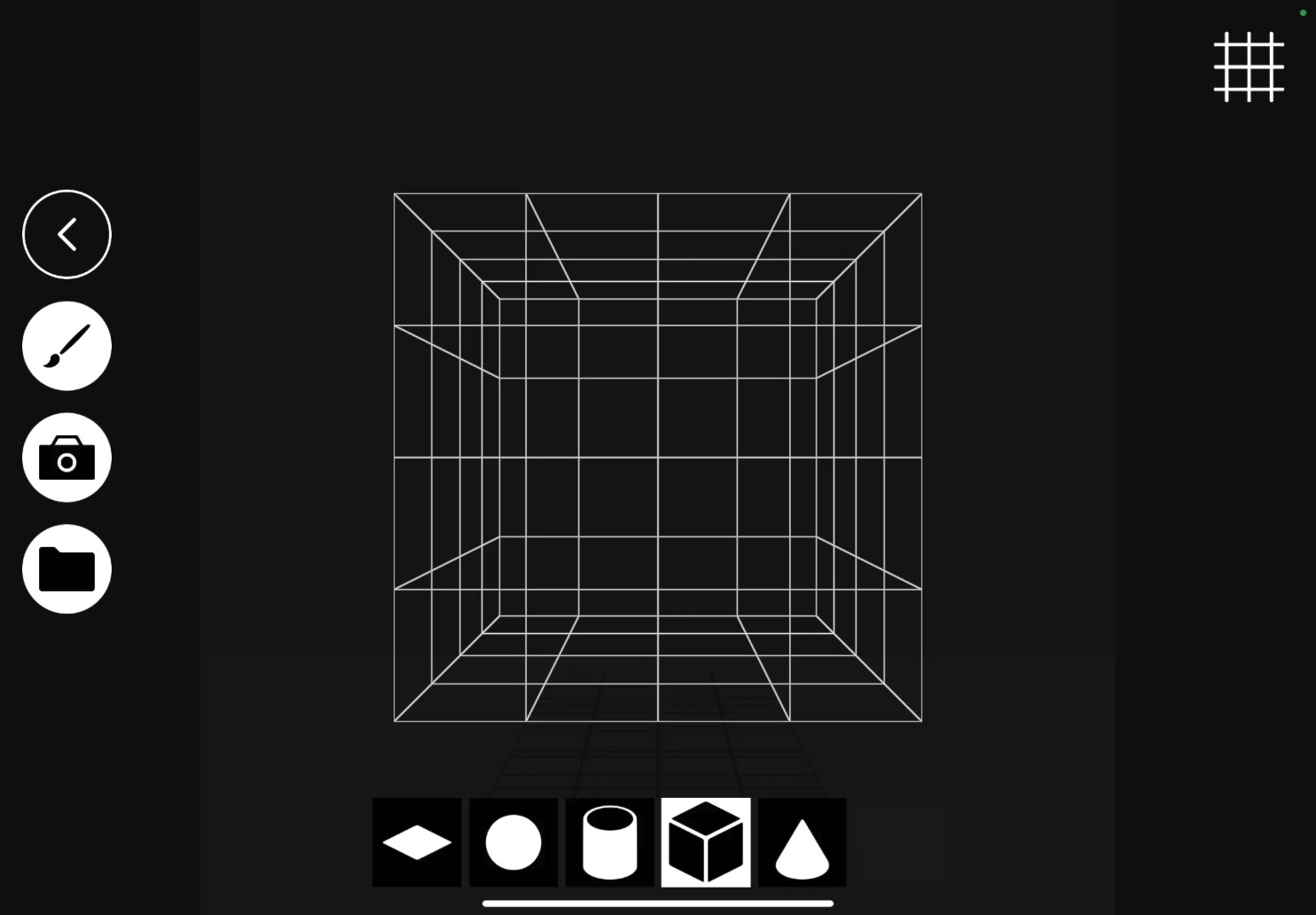 Crea un oggetto: tocca New, scegli una forma tra quelle che trovi in fondo allo schermo e tocca lo strumento Paint