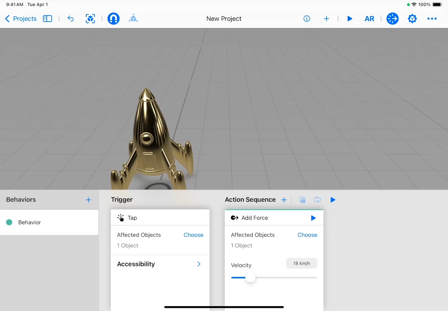 per avviare la scena, quindi tocca l’oggetto per attivare il comportamento.