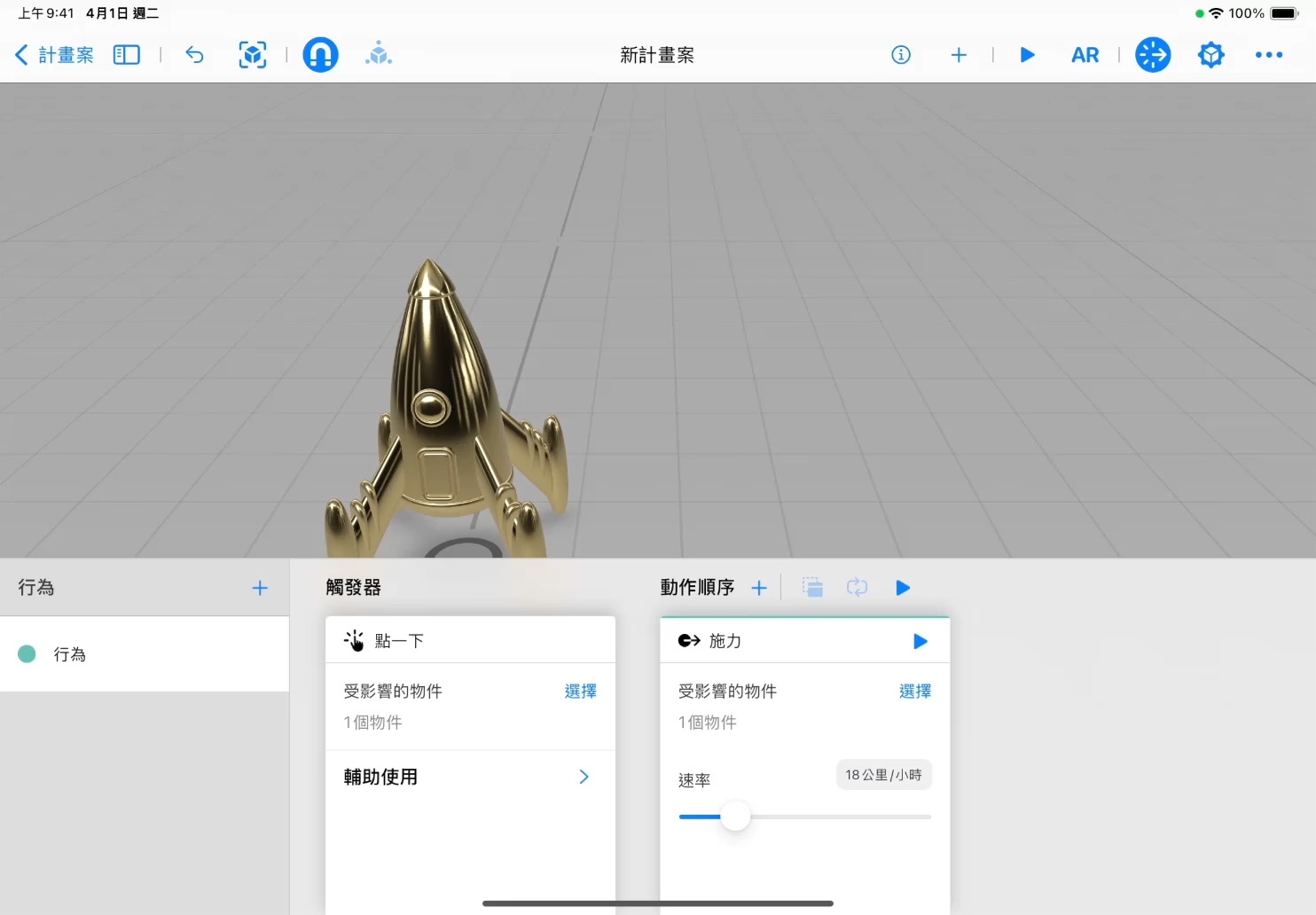在 AR 中放置。點一下「進入擴增實境」,並依畫面中的說明放置物件。點一下「播放」
