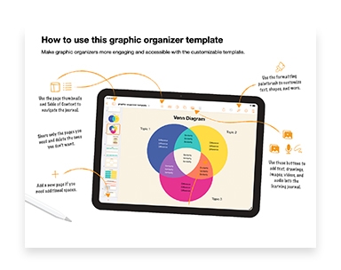 Förbered eleverna på att samla, kategorisera och sammanfatta ny information med en interaktiv tankekarta i Pages. Anpassa mallen till valfritt ämne.