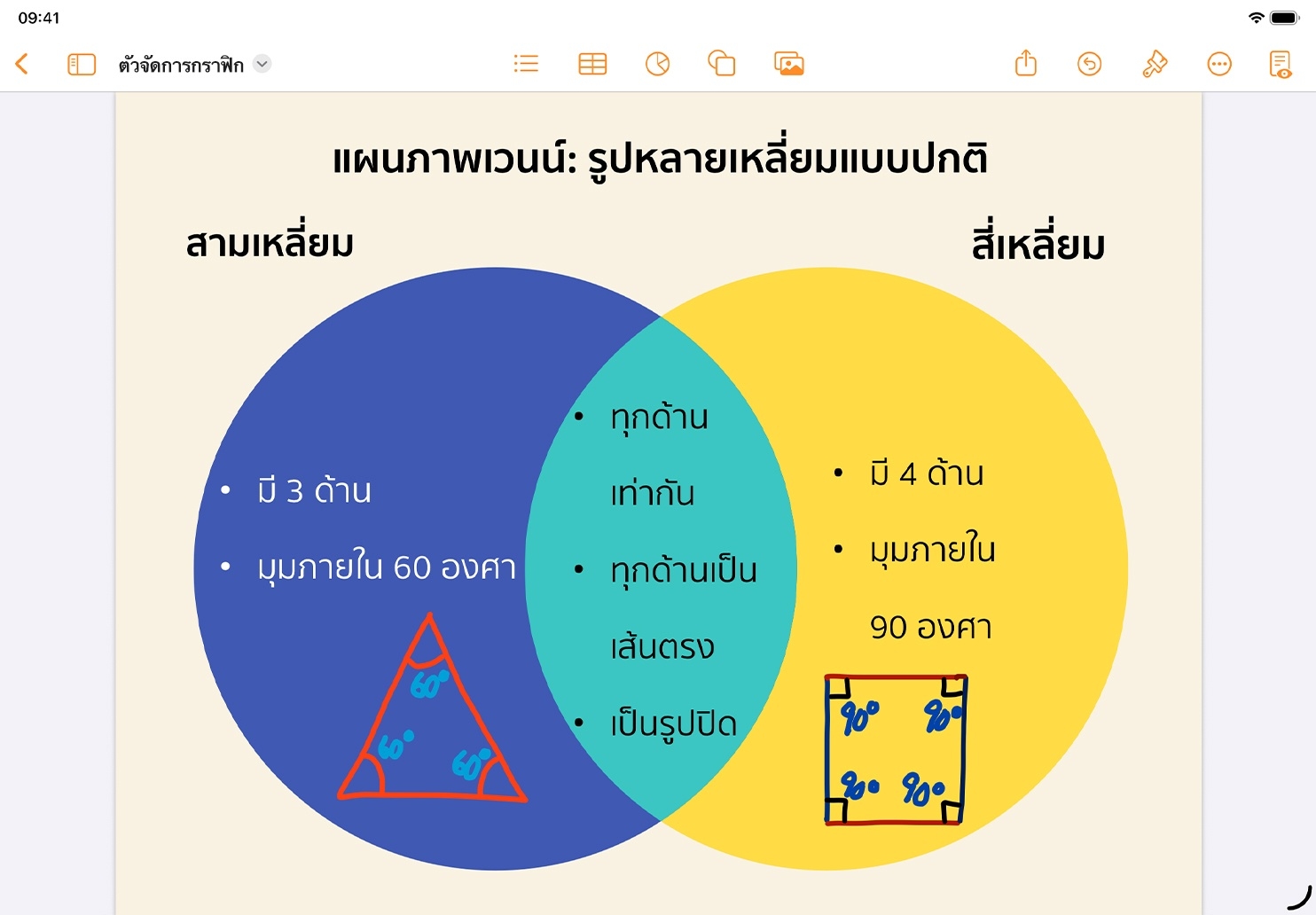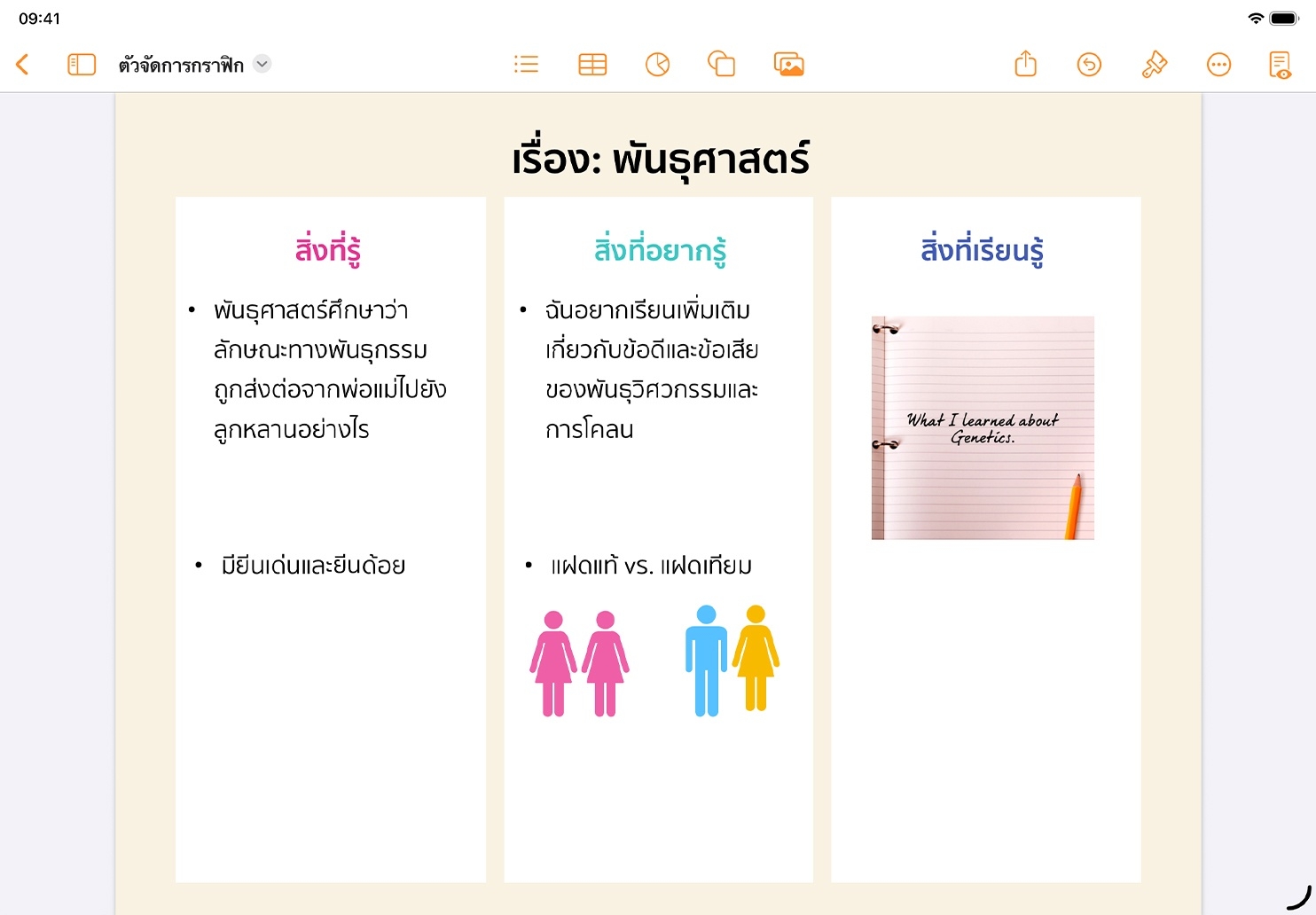 เตรียมตัวลองทำกิจกรรมนี้ เรียนรู้เพิ่มเติมเกี่ยวกับการใช้แม่แบบใน Pages สำหรับ iPad และดาวน์โหลดแม่แบบผังกราฟิก