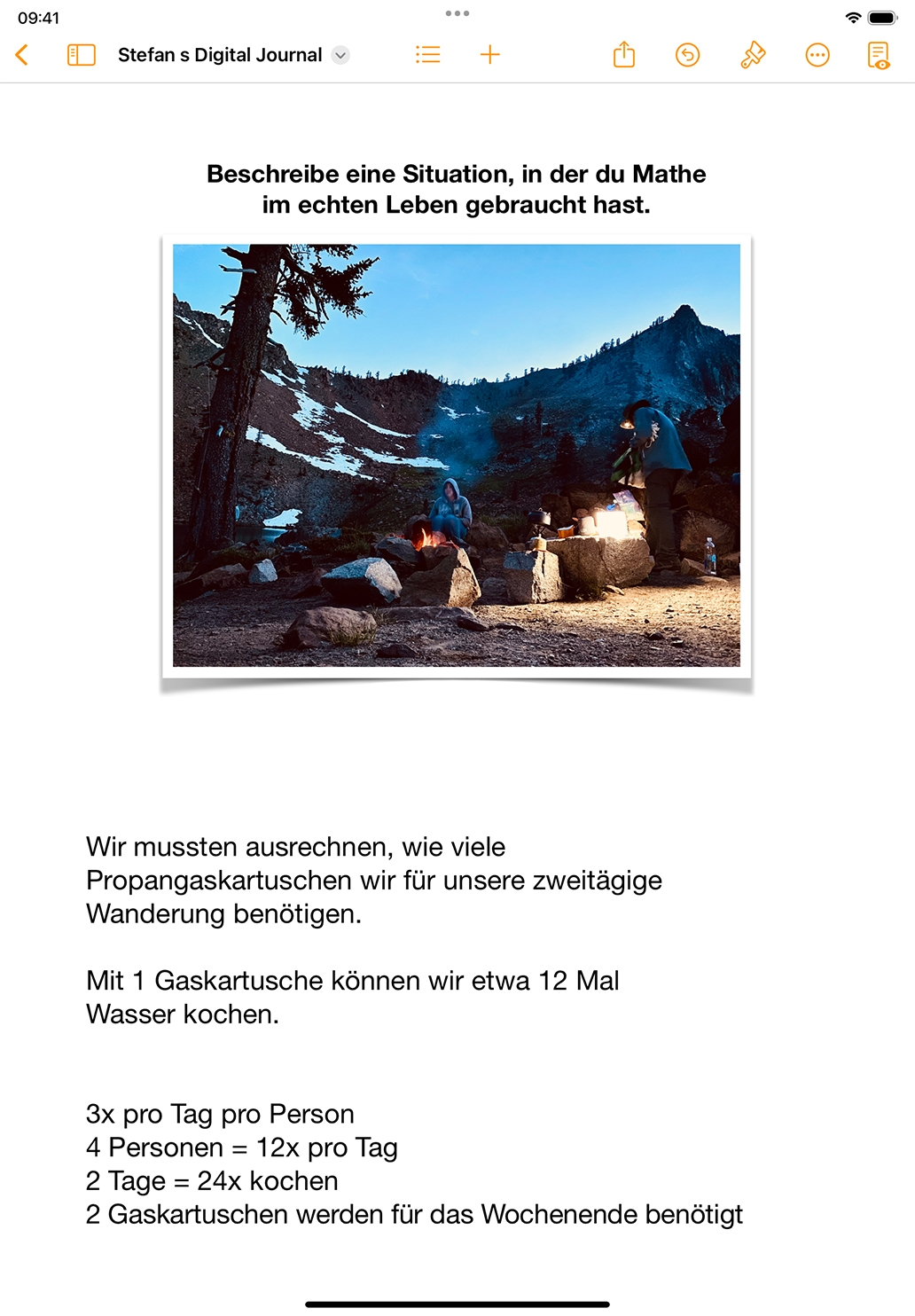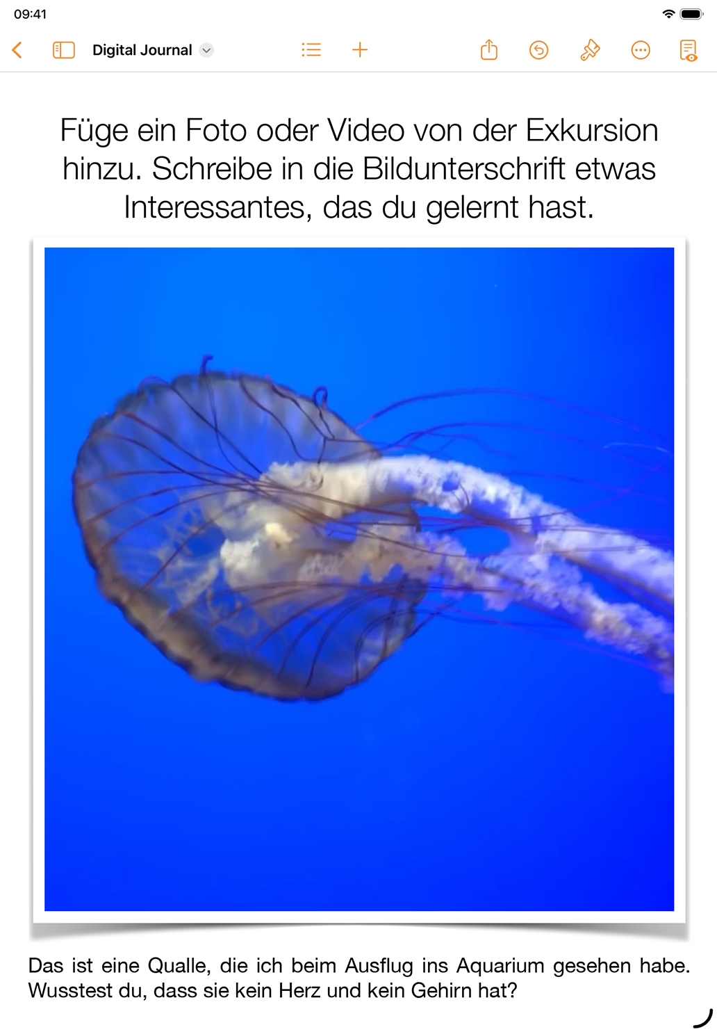 Lassen Sie Ihre Schüler:innen regelmäßig ein interaktives Tagebuch in Pages führen, wo sie Gedanken über neue Ideen festhalten können, z. B. über Themen des sozial-emotionalen Lernens, aktuelle Ereignisse, Meinungsumfragen oder literarische Themen, während sie ihre Fähigkeiten im Umgang mit dem iPad verbessern.