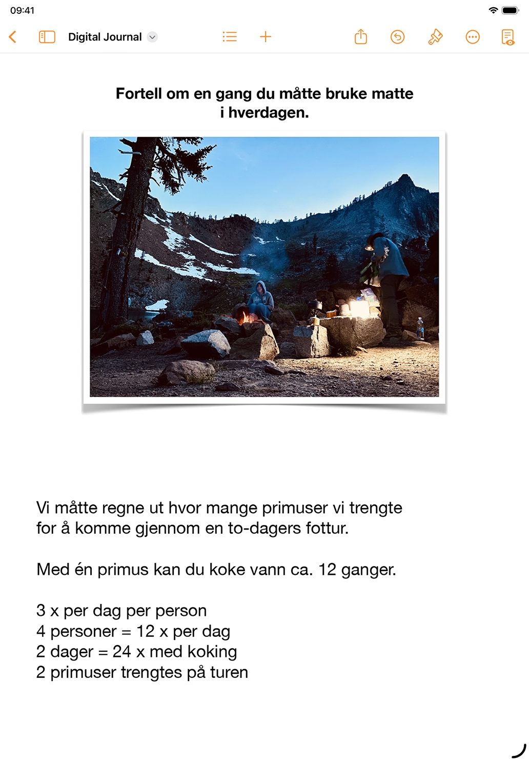 Få elevene til å skrive jevnlig i en interaktiv dagbok i Pages, der de kan skrive ned tankene sine om nye ideer, for eksempel sosioemosjonelle læreemner, dagsbegivenheter, meningsmålinger eller litteratur og samtidig bli bedre kjent med iPad.
