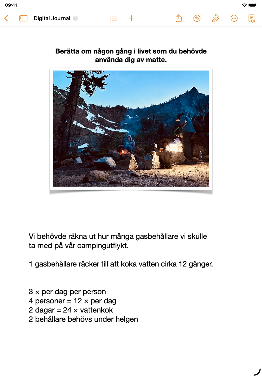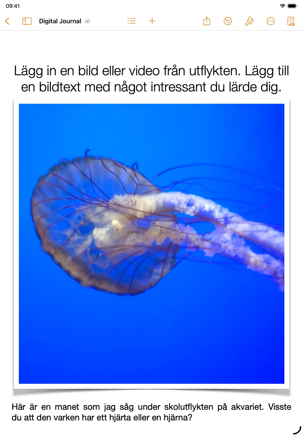 Be eleverna att föra en interaktiv dagbok i Pages där de hela tiden fyller på med tankar om nya idéer, till exempel den socioemotionella utvecklingen, aktuella händelser, enkäter eller skönlitterära teman, samtidigt som de bekantar sig med färdigheter för iPad.