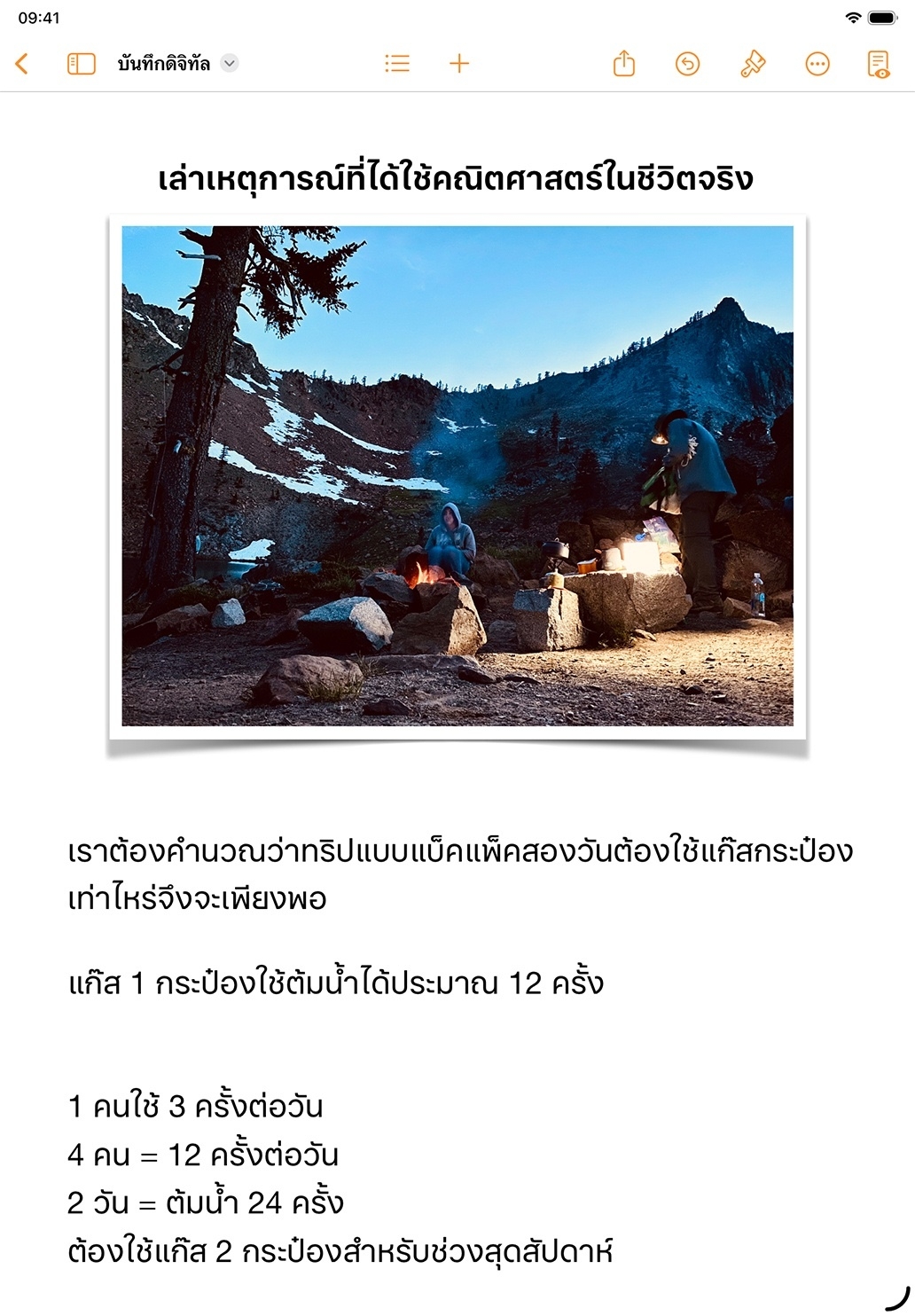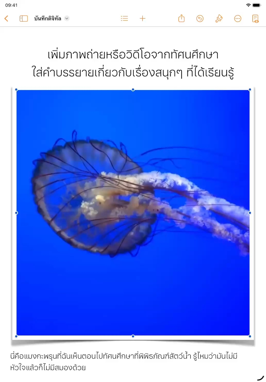 ให้นักเรียนเขียนบันทึกแบบอินเทอร์แอ็คทีฟอย่างต่อเนื่องใน Pages เพื่อทบทวนแนวคิดใหม่ๆ เช่น หัวข้อเกี่ยวกับการเรียนรู้ทางสังคมและอารมณ์ เหตุการณ์ปัจจุบัน แบบสำรวจความคิดเห็น หรือธีมวรรณกรรม ในระหว่างสร้างความคุ้นเคยกับทักษะการใช้ iPad