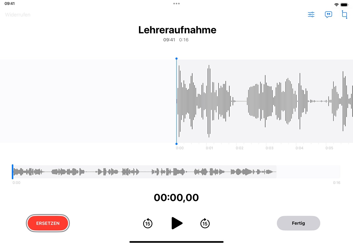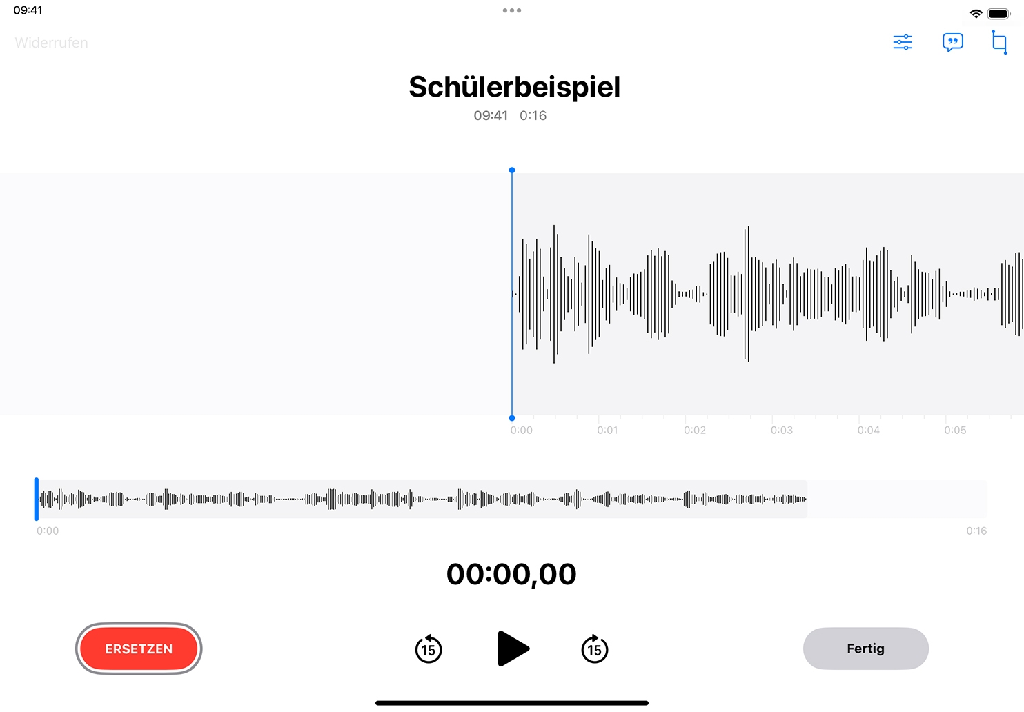 Nehmen Sie mit Sprachmemos auf dem iPad einen Absatz, ein Gedicht oder einen anderen geschriebenen Text auf, der laut vorgelesen wird. Machen Sie weitere Aufnahmen in verschiedenen Lernstadien, damit Sie diese vergleichen und teilen können, um den Fortschritt zu zeigen.