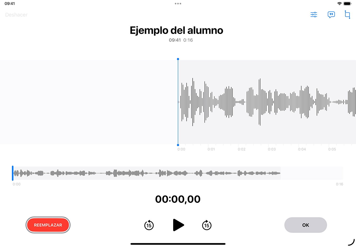 Utiliza Notas de Voz en el iPad para grabarte mientras recitas en voz alta un pasaje, un poema o cualquier otro texto. Haz grabaciones en distintas fases del proceso de aprendizaje para compararlas y mostrar tus avances.