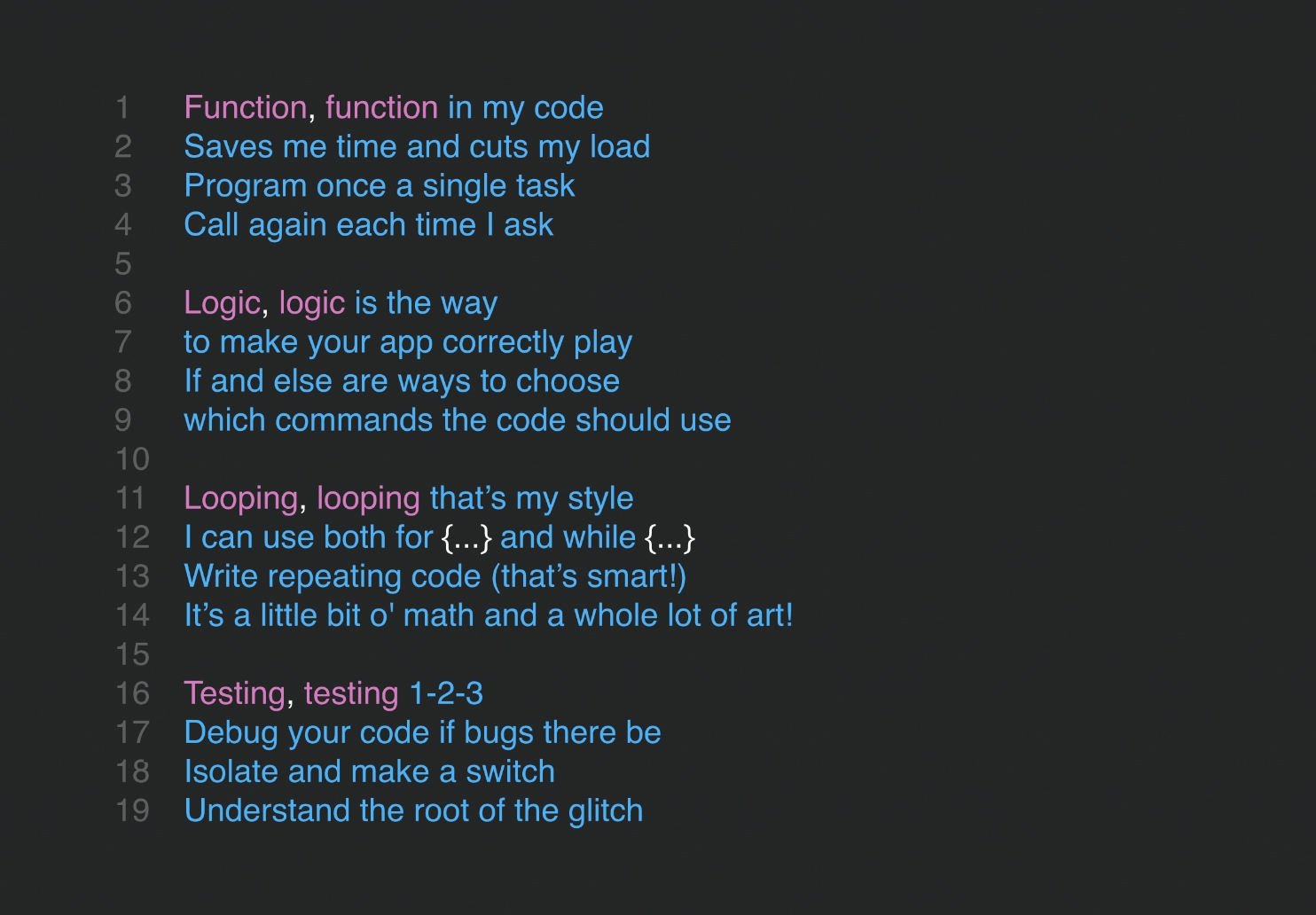 Uit je ideeën in een zelfbedachte rap.
