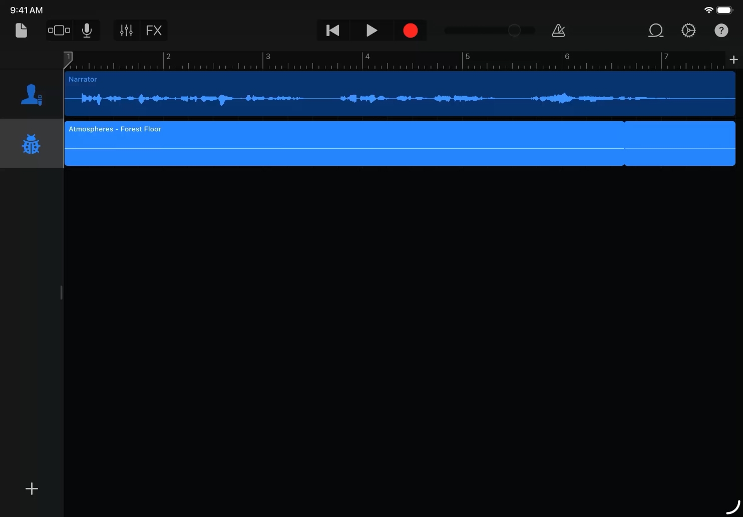 Escribe y edita una narración personal, una historia ficticia o un ensayo que informe sobre un tema y después usa la Grabadora de Audio de GarageBand para poner tu voz. También puedes añadir bucles de Apple Loops en otra pista para reforzar la ambientación y otros detalles.
