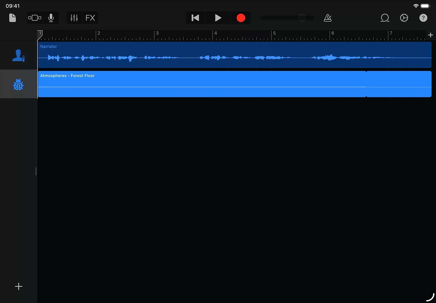 Skriv och redigera eget skrivande, en fiktiv berättelse eller en informell uppsats. Använd sedan ljudinspelaren i GarageBand för att spela in rösten. Lägg till ljudeffekter från Apple Loops i ett separat spår för att förstärka stämningen, miljön eller något annat.