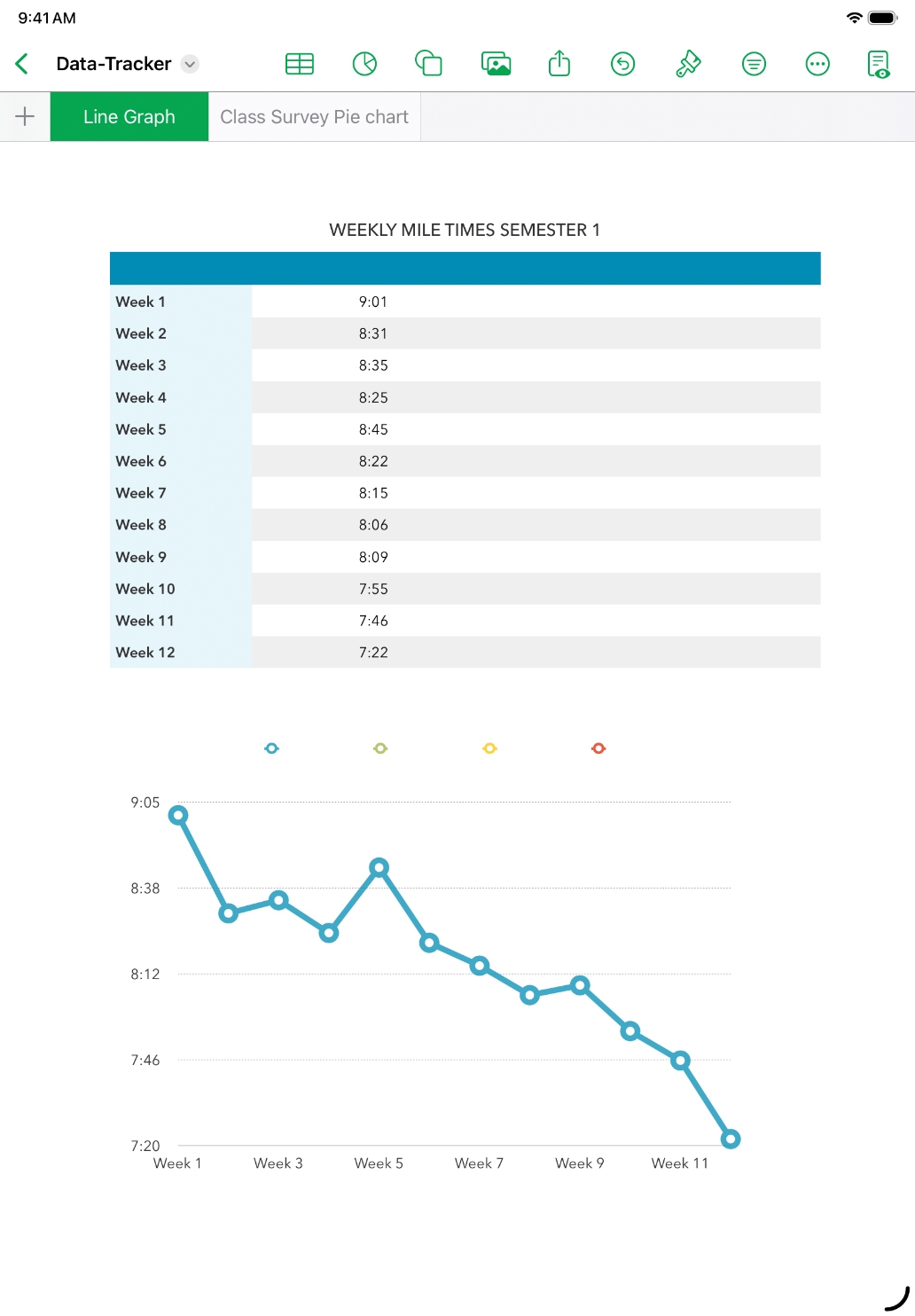 Pide a los alumnos que visualicen un conjunto determinado de datos en una hoja de cálculo de Numbers que lleve un registro de los cambios en las medidas o que representen los resultados de una encuesta u otro tipo de estudio.
