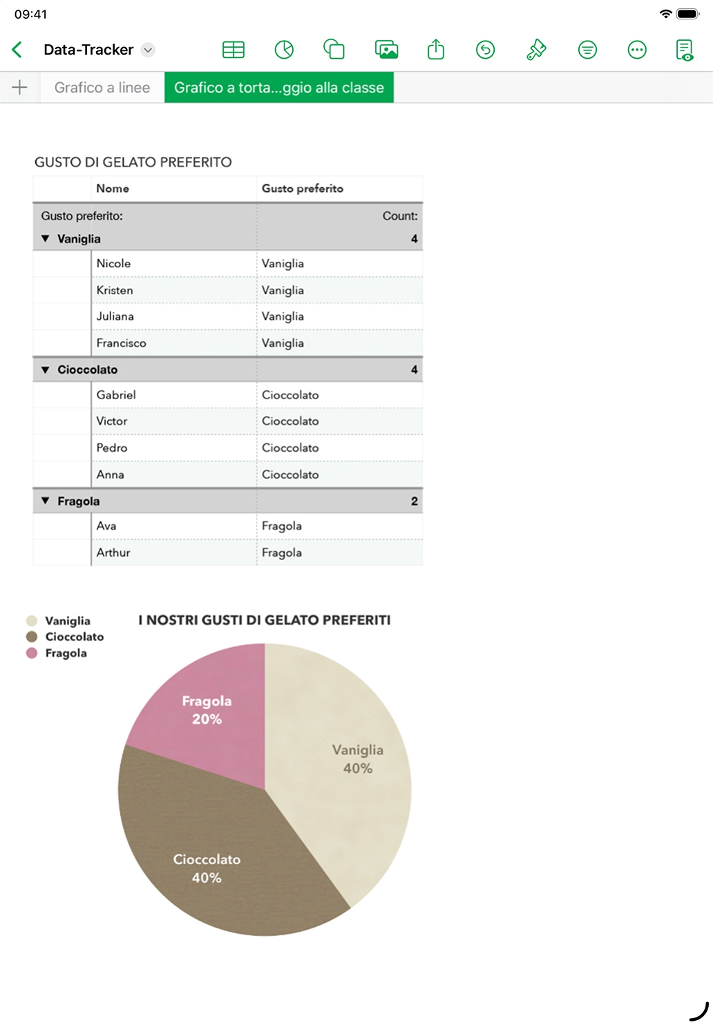 Invita la classe a usare diversi tipi di grafici a seconda dei dati.