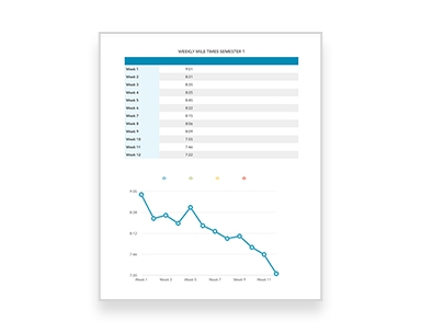 Skapa en övningsdagbok med Numbers för att registrera fysisk aktivitet under dagliga eller veckovisa intervaller. Håll koll på statistik, till exempel avstånd och tid, och gör ett linjediagram för att visa framsteg.