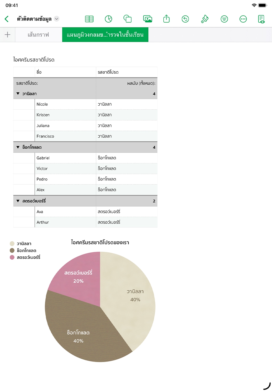ให้นักเรียนทำงานร่วมกันบนสเปรดชีต Numbers เพื่อวางแผนโปรเจ็กต์กลุ่ม และเพิ่มชีตสำหรับผู้เข้าร่วมแต่ละคน กราฟต่างๆ และงานอื่นๆ