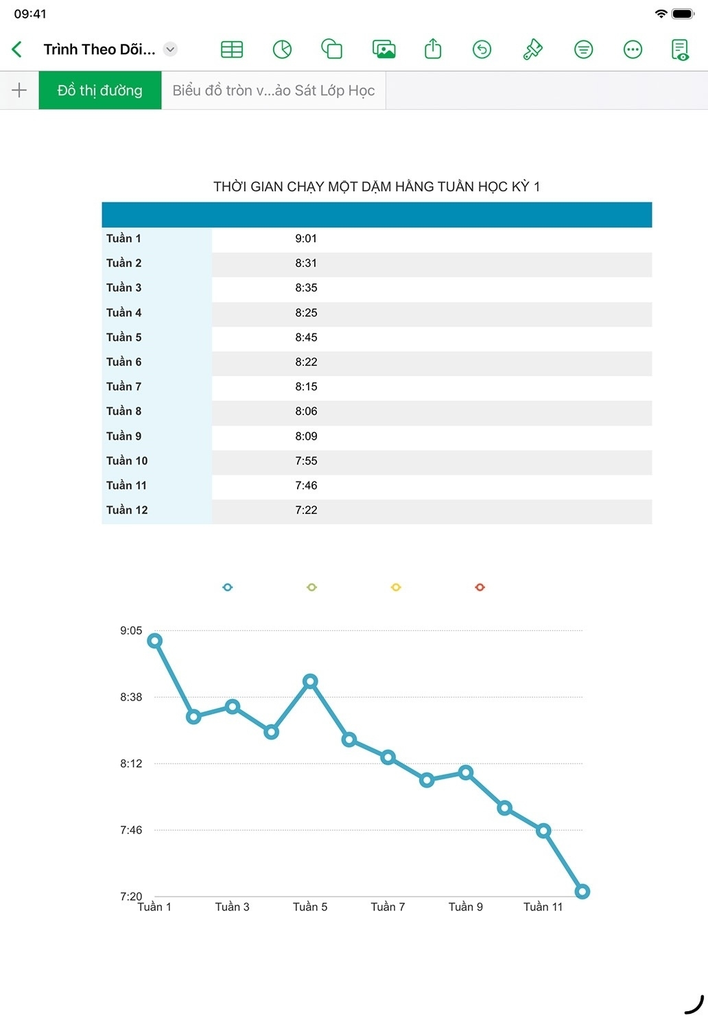 Tạo một cuốn nhật ký tập thể dục bằng ứng dụng Numbers để ghi lại hoạt động thể chất hằng ngày hay hằng tuần. Theo dõi số liệu thống kê, như khoảng cách và thời gian, đồng thời vẽ biểu đồ đường để thể hiện tiến độ.