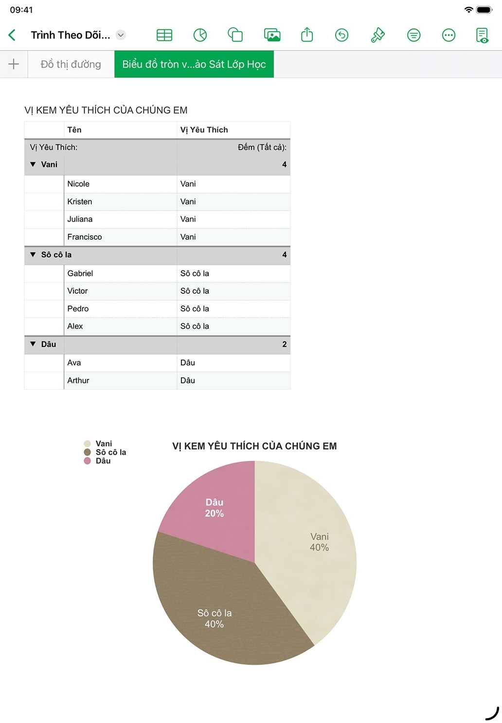 Mời các em học sinh cộng tác trên bảng tính Numbers để lập kế hoạch cho dự án nhóm và thêm nhiều trang tính cho nhiều người cộng tác, biểu đồ hoặc các tác vụ khác.
