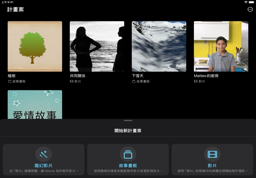 開始「魔幻影片」計畫案。點一下「開始新計畫案」下方的「魔幻影片」