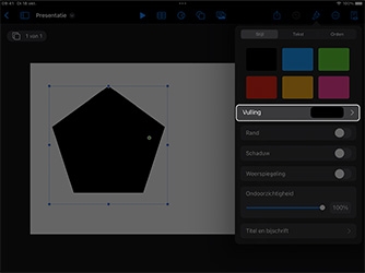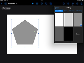 Je leert eerst hoe je een vorm aan een Keynote-dia toevoegt en onderzoekt vervolgens hoe je de eigenschappen van de vorm kunt opmaken of wijzigen.