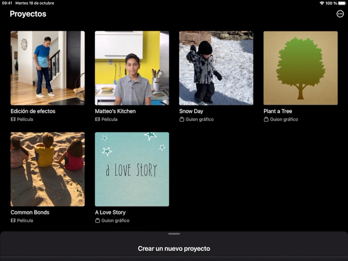 En la pantalla Proyectos de iMovie, abre el proyecto que terminaste en el tutorial anterior.