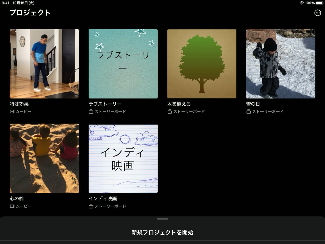 iMovieのプロジェクト画面から、前回のチュートリアルで仕上げたプロジェクトを開きます。