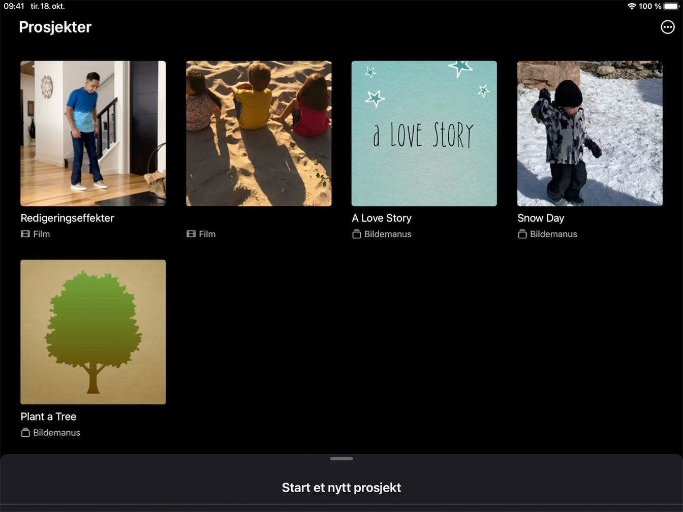 Åpne prosjektet du fullførte i den forrige veiledningen fra Prosjekter-skjermen iMovie.