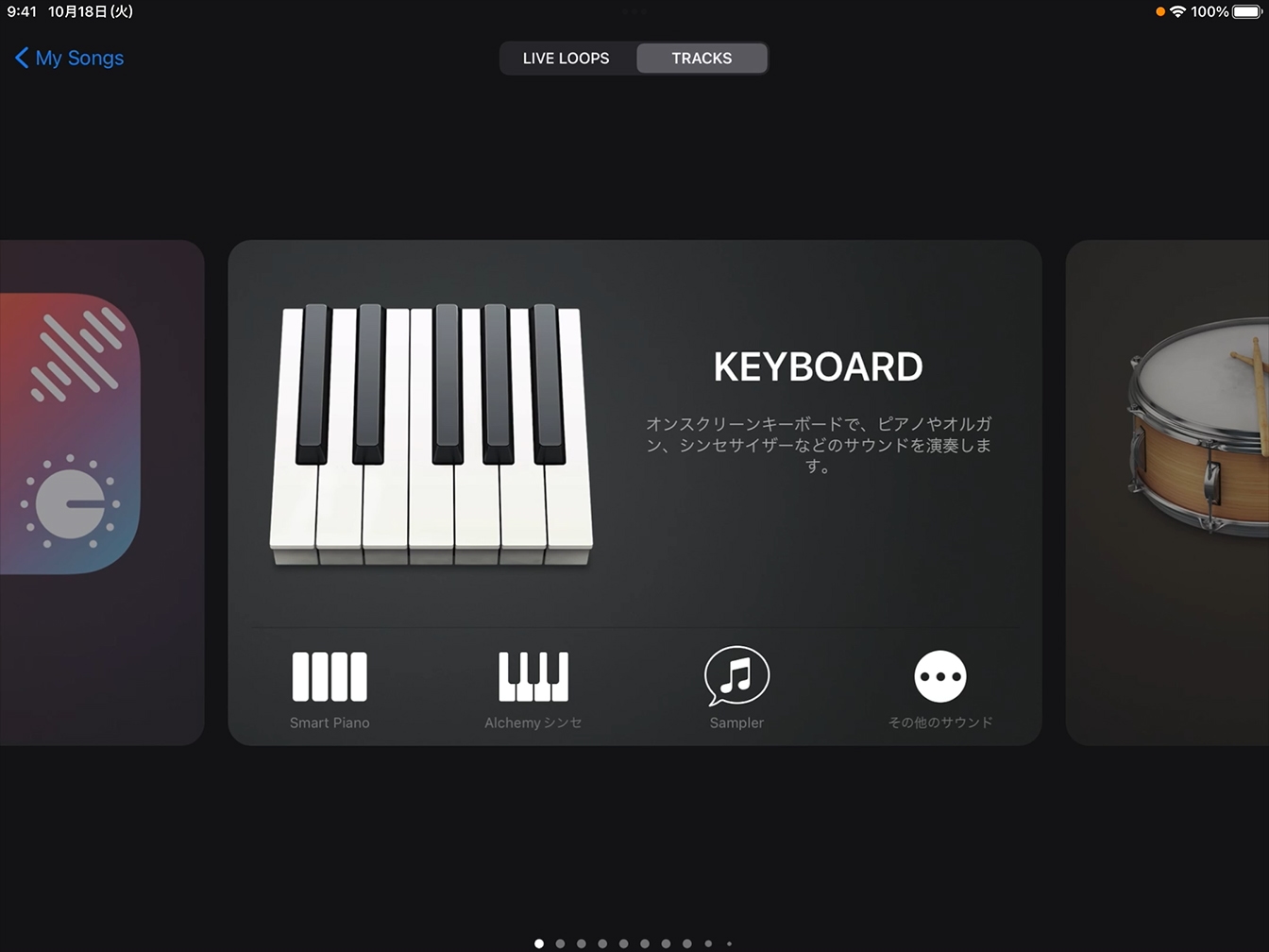 サウンドブラウザ内で、「DRUMMER」までスワイプします。