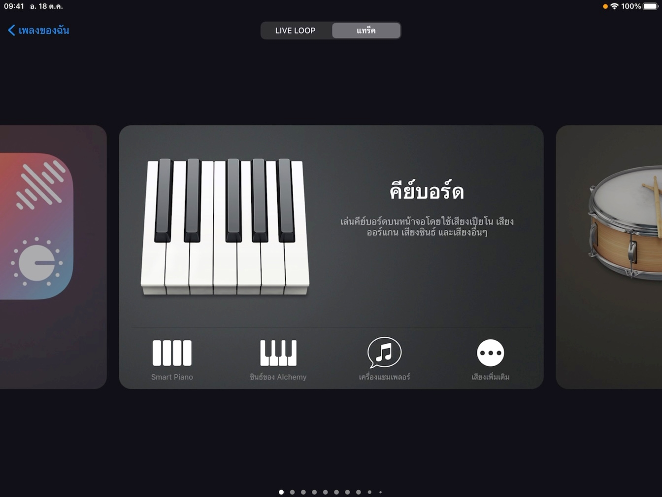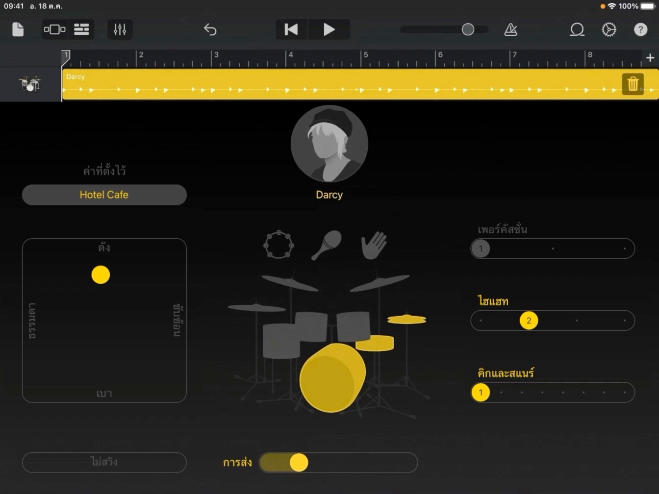 ลากแถบเลื่อนถัดจากเครื่องดนตรีแต่ละกลุ่มไปทางซ้ายหรือขวา เพื่อเปลี่ยนแพทเทิร์นที่เครื่องดนตรีเล่น