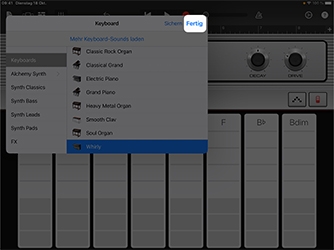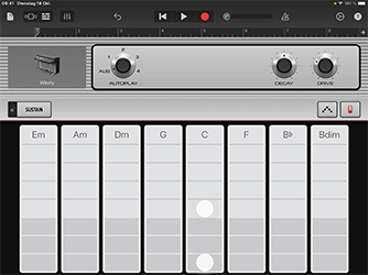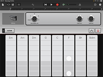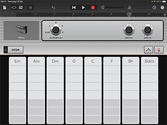 Verwenden Sie das Touch Instrument „Keyboard“ in GarageBand, um eine Akkordfolge – also eine Reihe von Akkorden – zu spielen, die in vielen berühmten Songs verwendet wird.