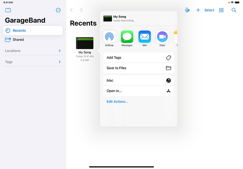 You wrote, recorded, and performed the perfect song for your next video. Import songs from GarageBand for iOS or iPadOS into Clips. You can also import songs from another app or from your Mac using AirDrop.