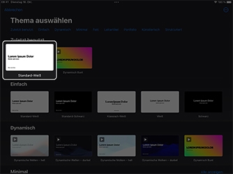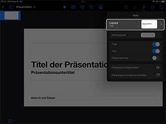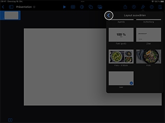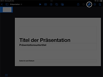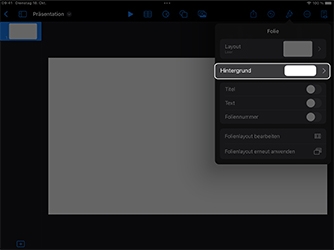 Sie richten ein Keynote Dokument mit leerem Layout ein, das Sie als Arbeitsfläche für Ihr Design verwenden können. Dann ändern Sie die Hintergrundfarbe Ihrer Folie, um die Szene festzulegen.