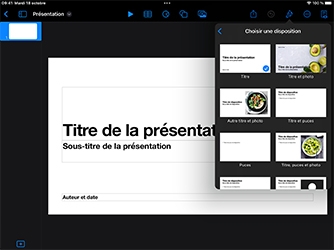 Vous allez préparer un document Keynote à partir d’une diapositive vierge, que vous utiliserez comme toile de fond pour votre création. Puis, vous modifierez la couleur d’arrière-plan de votre diapositive pour planter le décor.