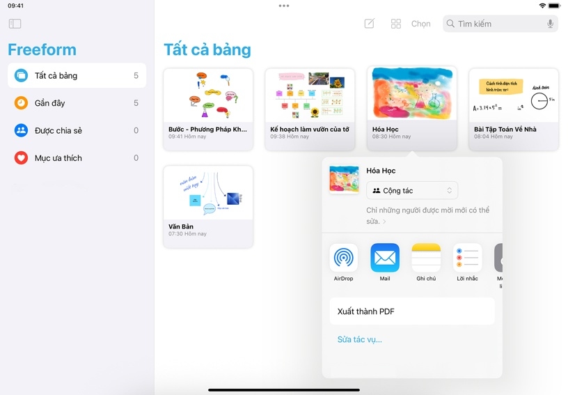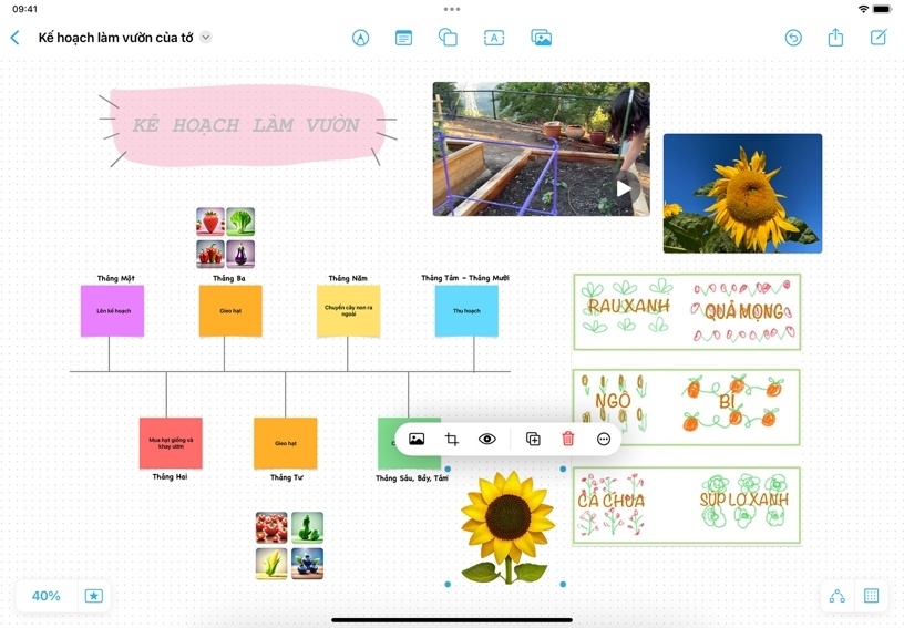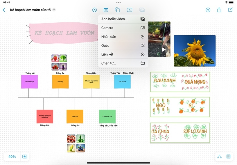 Bạn có thể thêm ảnh hoặc video bất kỳ vào bảng Freeform. Bạn cũng có thể thêm bất kỳ loại tệp nào vào bảng bằng cách quét, gắn liên kết hoặc chèn. Mở một bảng và chạm vào Phương Tiện
