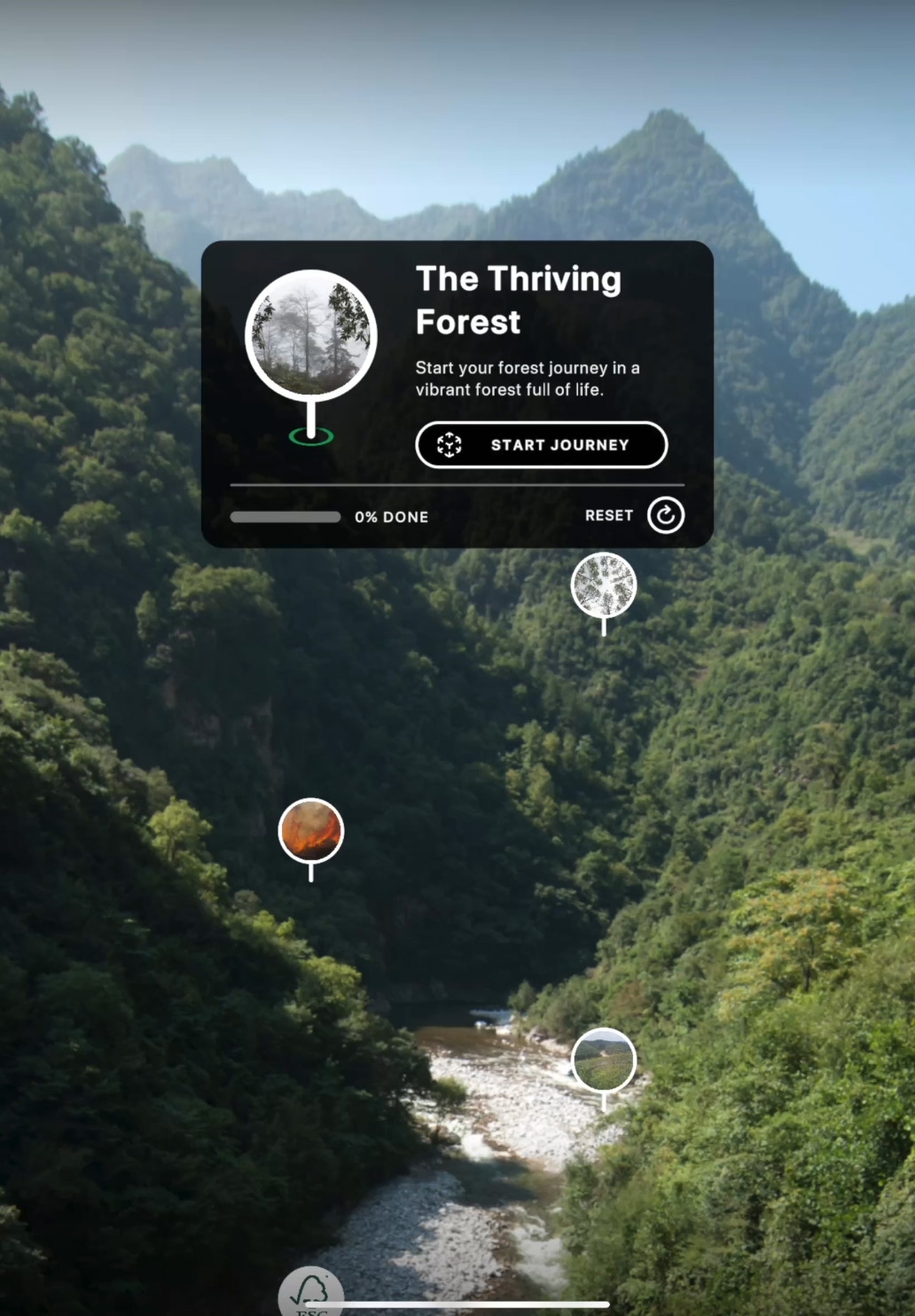 Starta berättelsen. Tryck på Start Journey i huvudmenyn och börja med The Thriving Forest.